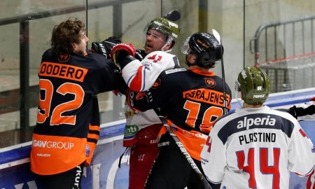 Mit einem Doppelpack inklusive Game-Winner hat Remy Giftopoulos hat seinem S.G. Cortina Hafro einen überraschenden 3:2-Heimsieg nach Overtime gegen Alps Hockey League...