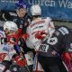 Adrian Danielsen vom HC TIWAG Innsbruck – Die Haie und Andreas Kristler von den Steinbach Black Wings 1992 sind für ihren Fight...