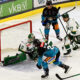 Beide Teams begannen etwas verhalten und neutralisierten sich gegenseitig. Gegen Mitte des ersten Abschnittes nahmen die 99ers dann langsam das Zepter in die Hand und kamen auch zu ersten Gelegenheiten. In Form von Colton Yellow Horn klopften die Hausherren per Stangenschuss erstmals an den Kasten von Linz-Keeper Ouzas.