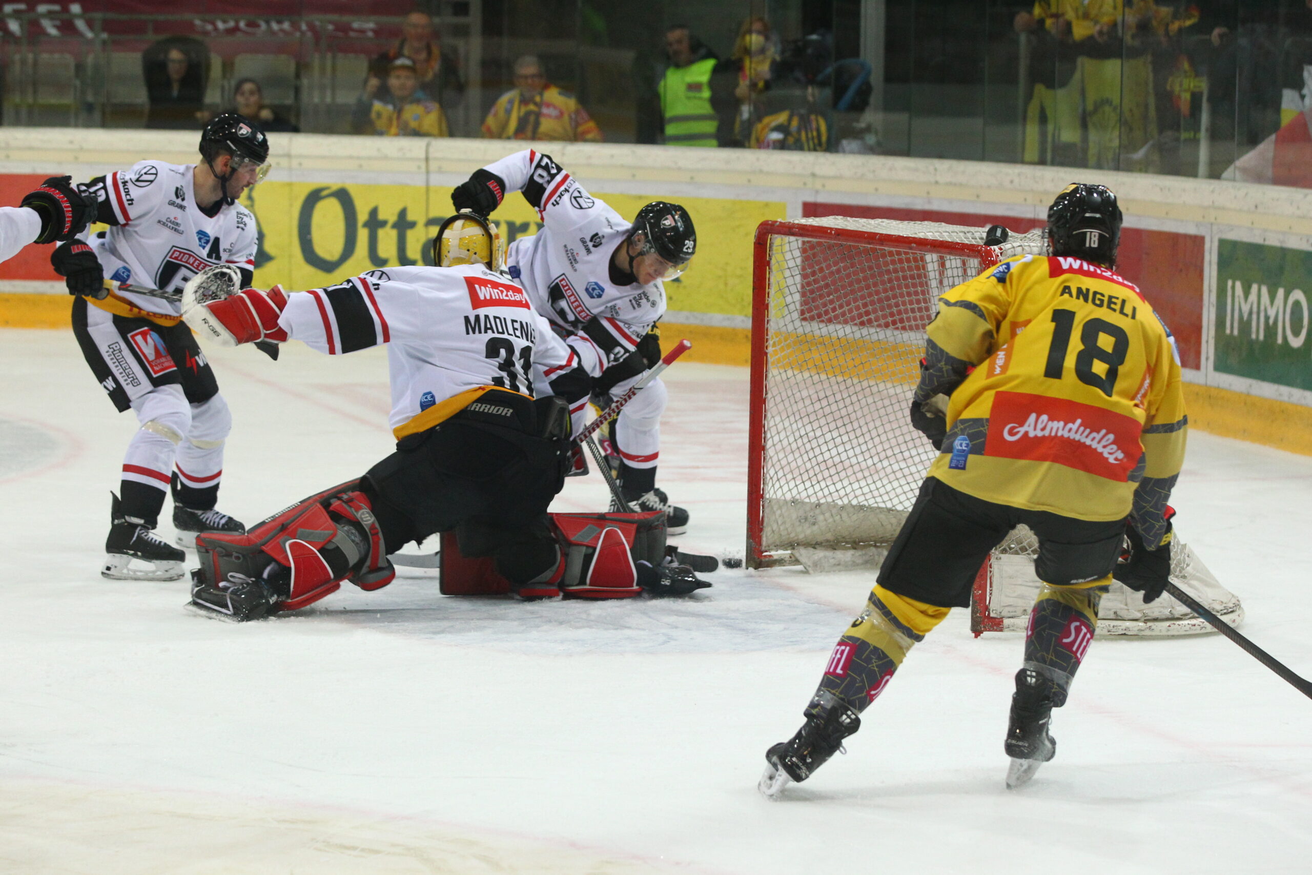 Tore: 0:1 Heier (4.), 1:1 Zimmer (5.), 2:1 Angeli (12./PP), 3:1 Zimmer (18.), 4:1 Gregoire (42.), 5:1 Fischer (58.)