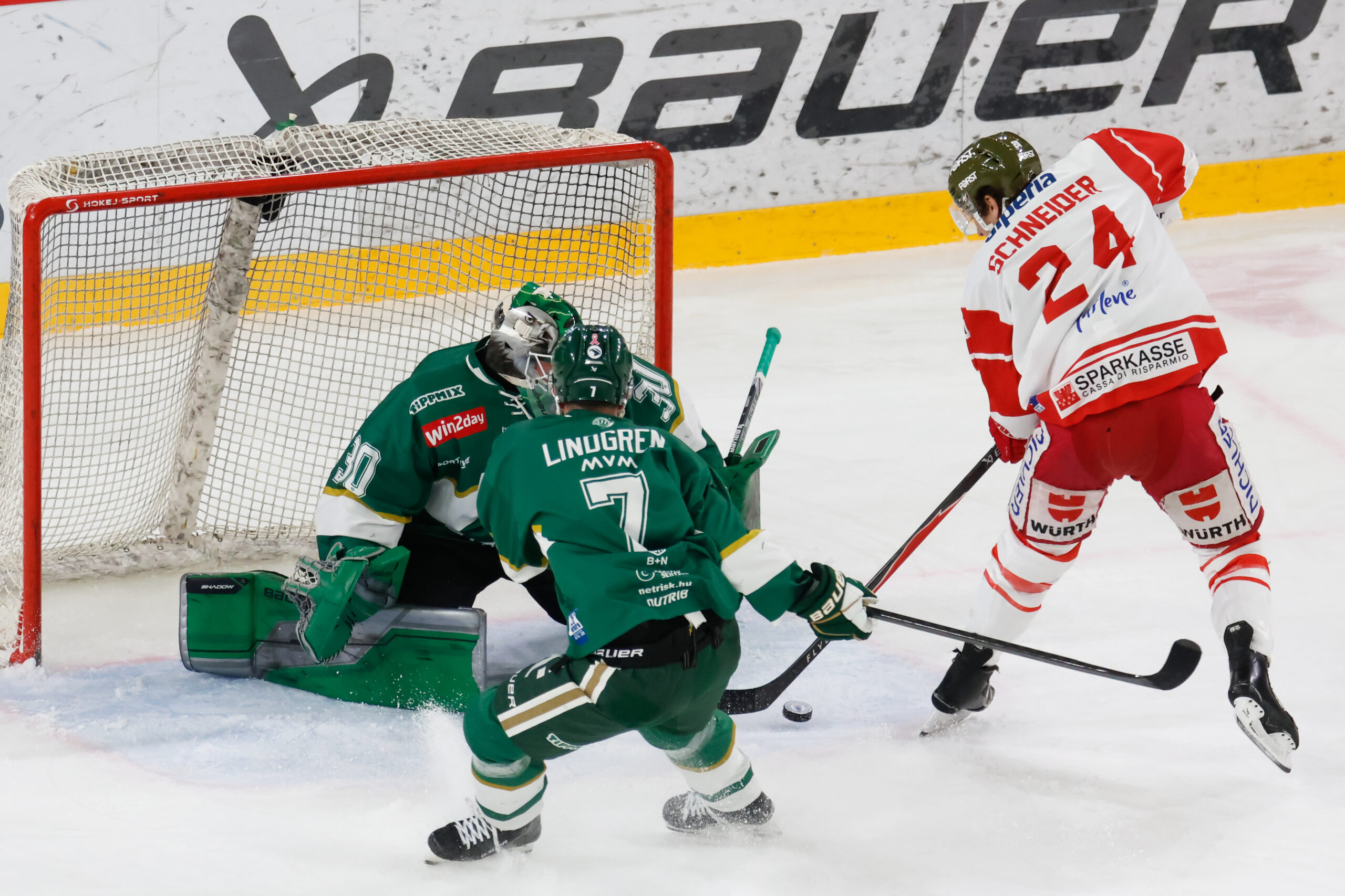 Der HCB Südtirol Alperia holte einen hart erkämpften 5:4-Shootout-Sieg beim FTC-Telekom. Die Foxes gingen spät im ersten Drittel in Überzahl in Führung, ehe Budapest das Spiel drehte und zwischenzeitlich 3:1 führte. Noch im Mittelabschnitt glich Bozen aus. Im Schlussdrittel traf Brady Shaw zum zweiten Mal für FTC, doch Luca Frigo erzielte ebenfalls seinen zweiten Treffer und rettete die Foxes in die Overtime. Im Penaltyschießen sicherten sich die Südtiroler schließlich den Zusatzpunkt.