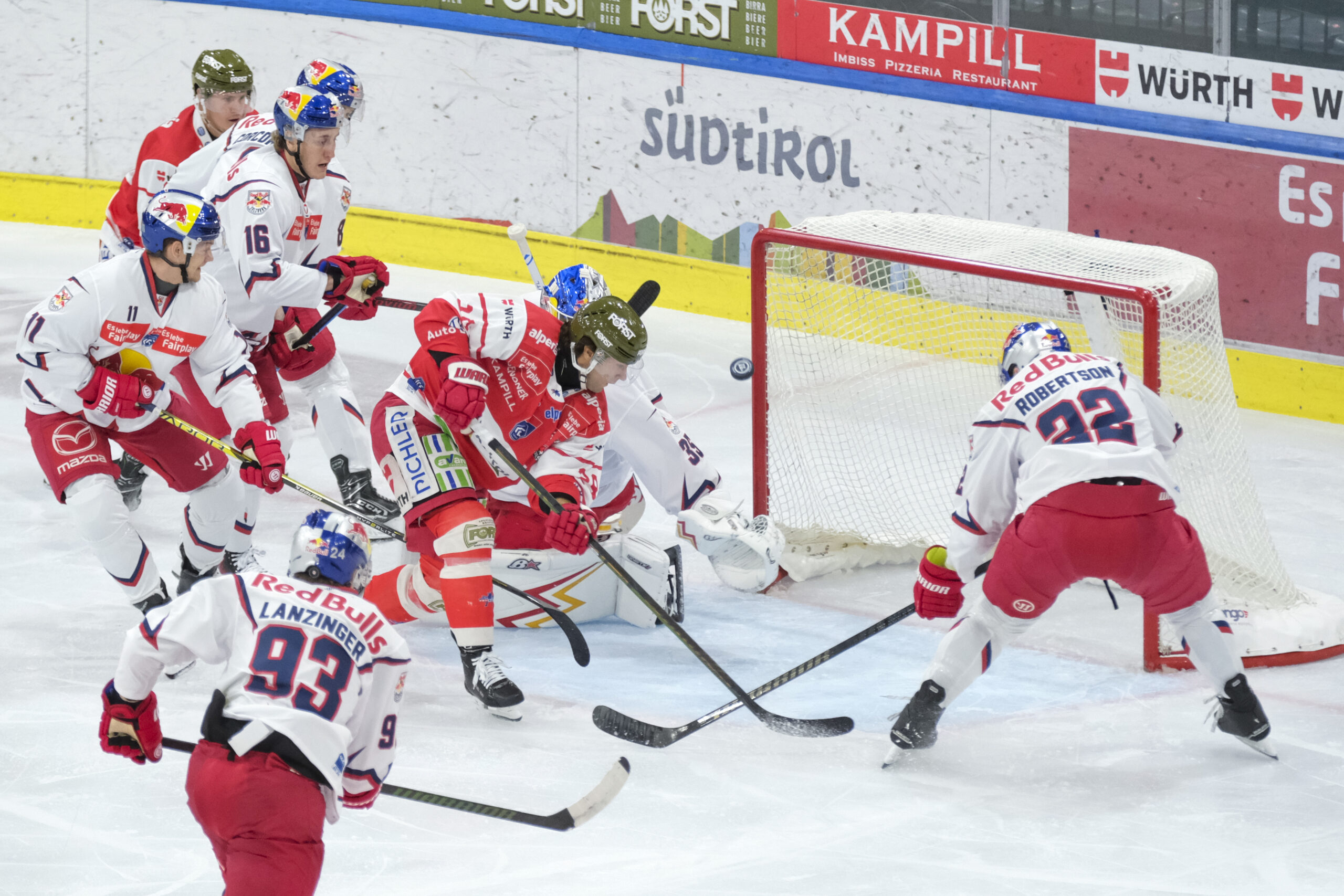 Einen intensiven Schlagabtausch lieferten sich der HCB Südtirol Alperia und der EC Red Bull Salzburg. Der amtierende Meister drehte die Partie im Mittelabschnitt zu seinen Gunsten und behielt schlussendlich mit 4:3 die Oberhand. Neuzugang Travis St. Denis erzielte bei seinem Liga-Debüt zwei Tore.