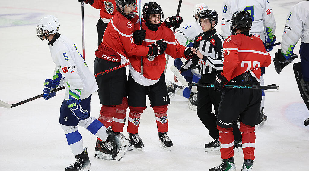 Österreich ging in einem hartumkämpften ersten Drittel gegen die Risi spät in Führung. Emil Wagner stand in einer Überzahl nach einem Rebound goldrichtig im Slot und schoss zum 1:0 ein (19.). Im zweiten Drittel hatte Österreich zwei Unterzahl-Spiele, im ersten hielten sich die ÖEHV-Cracks noch schadlos. Zwei Minuten nach Halbzeit der Partie sorgte Tim Koštomaj Valenčak mit einem satten Schuss in Überzahl für den 1:1-Ausgleich für Slowenien (32.).