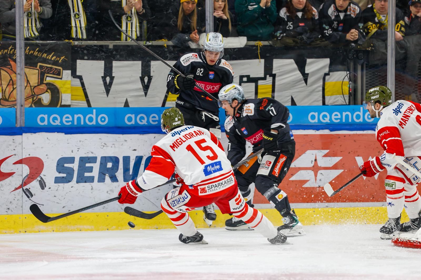 Einen großen Schritt in Richtung Pre-Playoffs machten die Vienna Capitals im Duell gegen den HCB Südtirol. Vor heimischer Kulisse setzten sich die Wiener gegen die Füchse mit 3:0 durch. Der Abstand auf Rang 11 beträgt nun sechs Zähler.